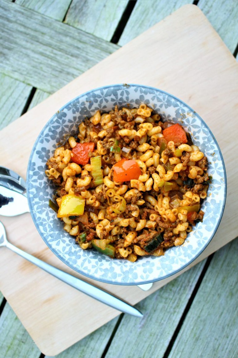 Pentru 4 persoane. Adaugati: 300 g Macaroane Honig, 1 pachet baza Honig pentru Macaroane și Spaghete, ulei de masline, 300 g carne de vita tocata, 400 g legume italiene prajite, 250 g rosii cherry (injumatatite), 150 ml apa.