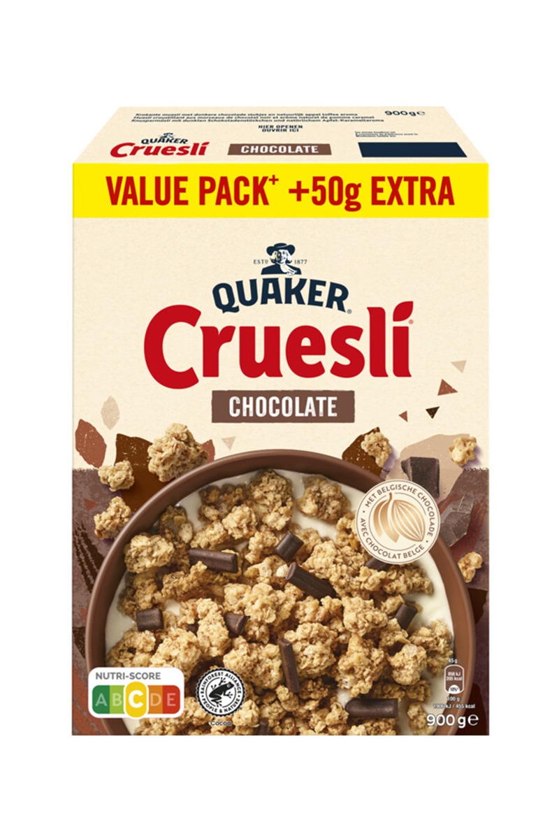 Un amestec delicios si crocant de cereale cu ovaz prajit si bucati delicioase de ciocolata belgiana neagra.
