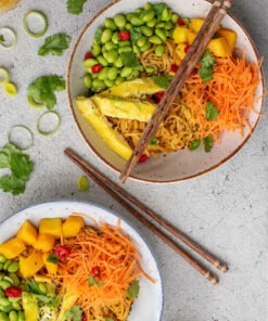 Ingrediente: Legume (ceapa, morcov, praz, telina, ardei gras), praf de supa (soia), sare, condimente (turmeric, radacina de ghimbir, coriandru, piper, boia de ardei, galanga, ardei cayenne, seminte de chimen, schinduf, cardamom), zahar, praf de sos de soia (sare, soia, grau, maltodextrina), condimente (usturoi, patrunjel, arpagic), sare minerala (clorura de potasiu), sirop de glucoza, ulei de floarea soarelui, ulei de rapita.