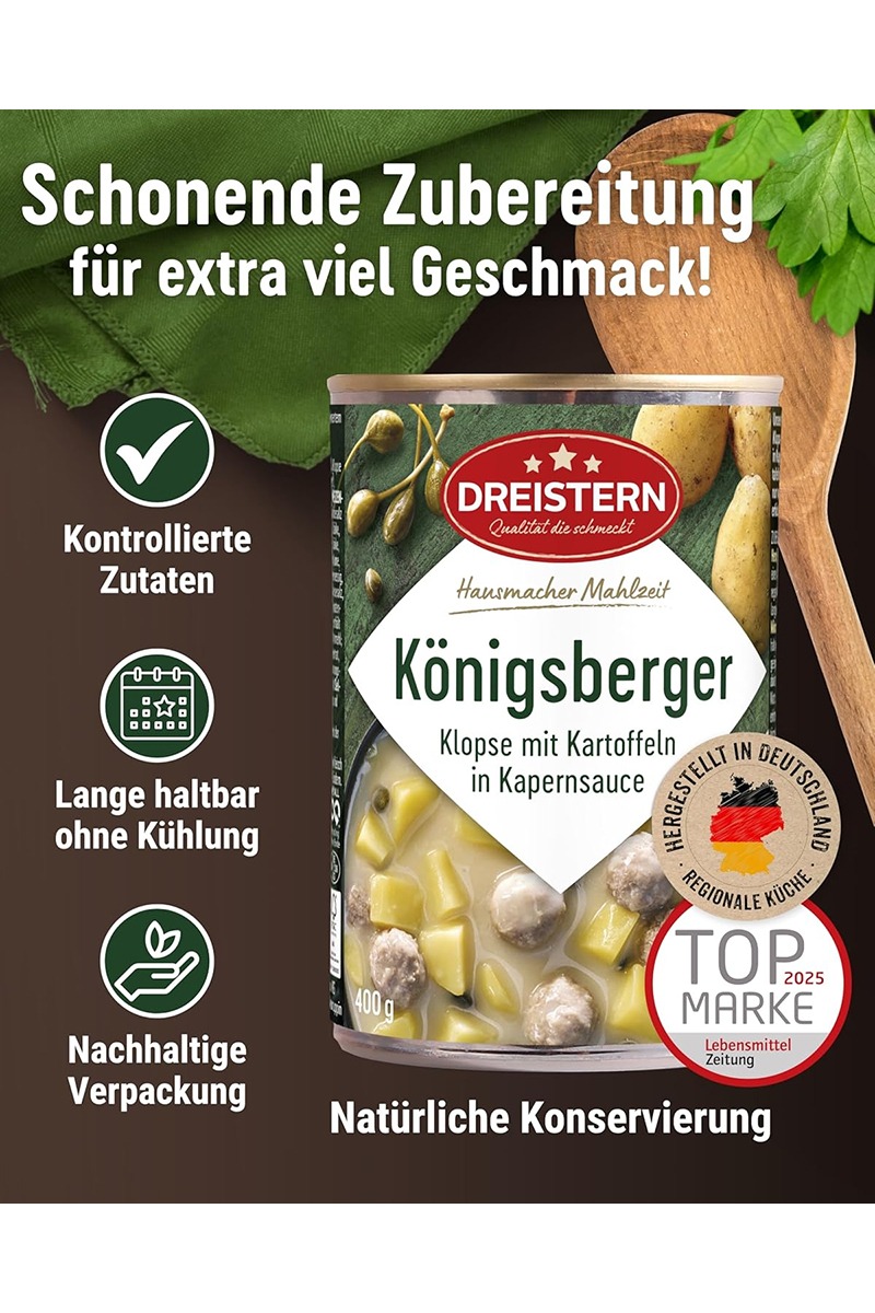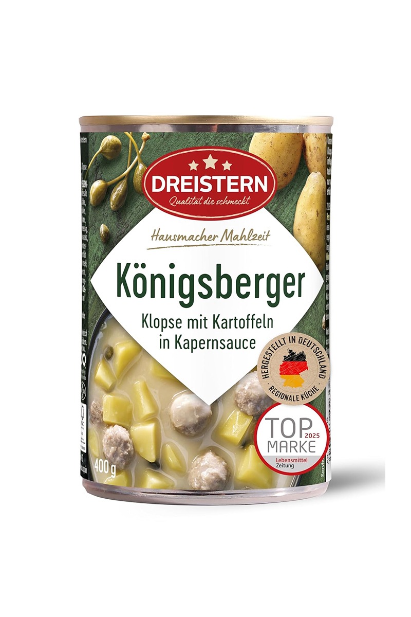 Dreistern Königsberger Klopse mit Kartoffeln Kapernsoße 400g.