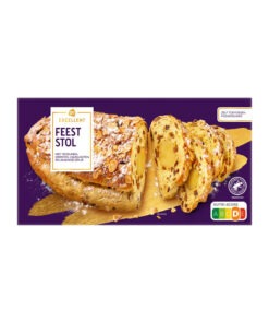 Ingrediente: faina de grau, 20% stafide, 10% migdale, zahar, apa, 4,1% coacaze, alune de padure, drojdie de panificatie, 2,1% coaja de portocala, gluten de grau, stabilizator (sorbitoli [E420]), zer pudra vegetarian, ulei vegetal (rapita, floarea-soarelui), proteina din oua de gaini crescute liber, sirop de glucoza-fructoza, sare iodata, emulgator (stearoil-2-lactilat de sodiu [E481]), mono- si digliceride ale acizilor grasi [E471], mono- si digliceride ale acizilor grasi, esteri ai acidului monoacetil- si diacetiltartric [E472e]), oua de gaini crescute liber, faina de grau pregelatinizata, faina de secara, acid (acetat de calciu [E263]), agent de ingrosare (guma de celuloza [E466]), dextroza, arome naturale, sirop de glucoza, proteina vegetala (cartof, mazare, fasole lata), agent de tratare a fainii (acid ascorbic). acid citric [E300]), turmeric, drojdie, agent de crestere (carbonati de sodiu [E500]), proteine din lapte, faina de malt de grau, aroma, regulator de aciditate (acid citric [E330]), maltodextrina.