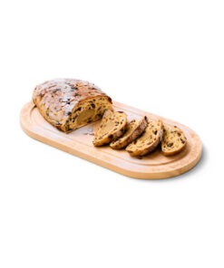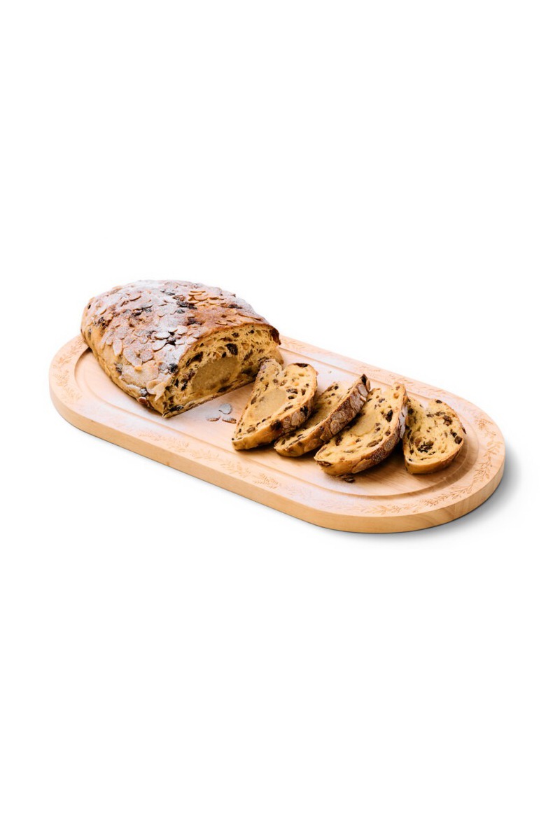 Descriere: Paine cu fructe cu 20% pasta de migdale, 3,7% alune si 3,7% coaja de portocala confiata