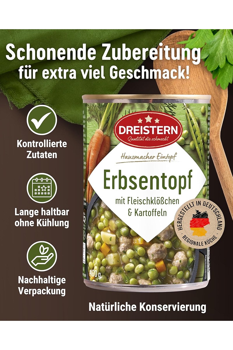 Fabricat in Germania de Dreistern Konserven GmbH & Co. KG , Philipp-Oehmigke-Str. 4, 16816 Neuruppin.